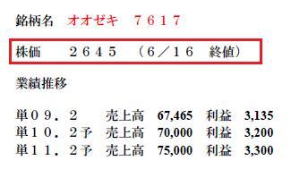 オオゼキ 7617は14日引け後にMBOによって