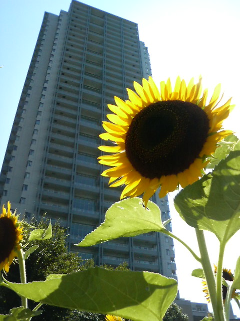 高層ビルにヒマワリも合いますね。