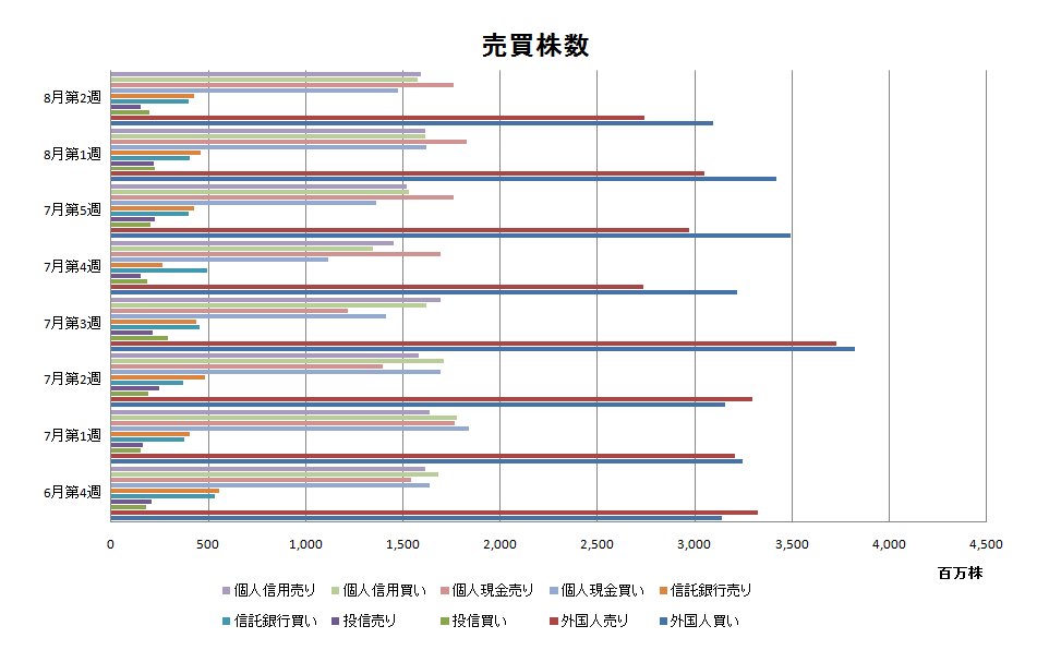 8月第2週投資主体別売買動向(グラフ)