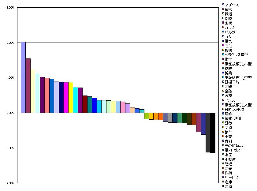 1.マザーズ 2.03%(-0.71%)