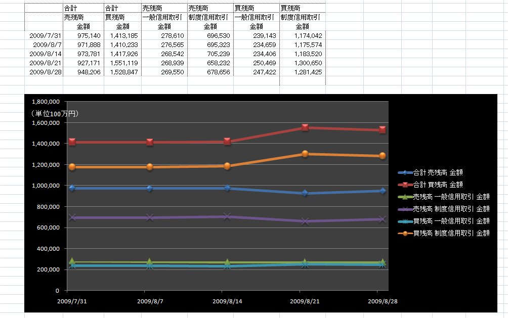 この週(24~28日)の日経平均株価は約295円上昇し、週半ばに年初来高値(1万639円)を更新した。高値を付けたことでいったん利益を確定するための売りが出たようだ。一方、信用売り残高は2週ぶりに増加。前の週に比べ210億円増の9482億円となった。(日経新聞)