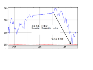 もう1つの注目点である上海の株式市場は、1時過ぎまでは順調に上昇していたのですが、その後急速に調整して、2時半頃には瞬間的に前日の終値を下回りました。結局0.68%の上昇で終えています。