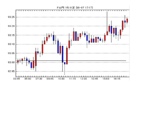 3つ目のポイントである対ドル円レートは、多少円安方向に振れており、株式市場の上昇を支えたようです。特に、大引け前に比較的に大きく円安方向に動いたことか注目されます。
