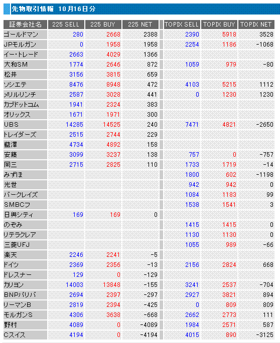 ・正確には、公開される先物手口には、その証券会社の自己勘定の注文やその証券会社を通じて出されたヘッジファンド等の注文がごちゃまぜになっているので、クレディスイスが売っているという表現は正しくないのですが、便宜的にこう書いています。売買を見てると、今日みたいな偏った手口の時はおそらく特定の大口顧客の注文が大部分を占めている感じで、クレディスイスの手口として公開されているものについては、ある主体の動向を示すものとして捉えても良いかと思います。