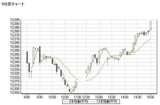 日経平均株価 10,393.23 +72.29 +0.70%