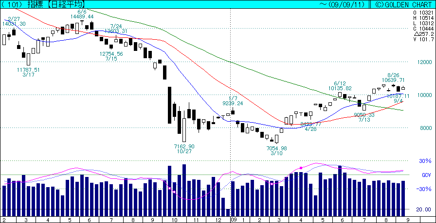 本文にも書いた通り、日経¥10,700は十分にあり得る株価と思いまするが、上げていくにはどうも材料不足かもしれませぬ。ちょっと様子見気分かと…(^^;