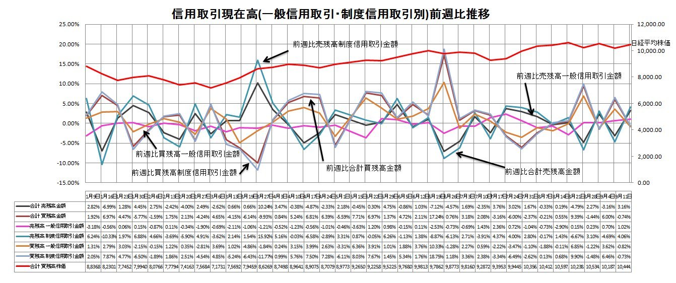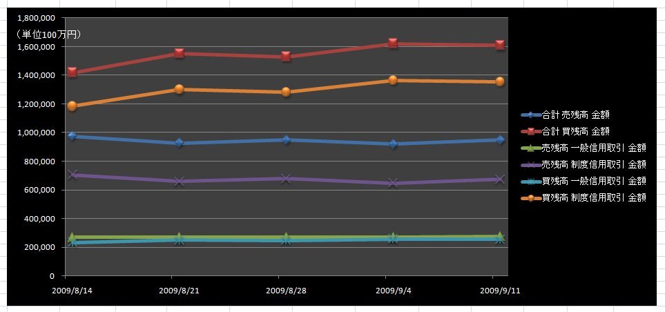 一方、信用売り残は増加に転じた。週末にかけて円相場が一時1ドル=90円台前半と円高が進んだため、輸出関連企業の収益悪化懸念で株価が調整するとの見方から売りが出た。売り残高は前の週に比べ290億円増の9473億円。個別では、7日に当日終値を下回る公募価格を決定したNTN(6472)や、10日に株価により条件が変わる転換社債(MSCB)を150億円発行すると発表した長谷工(1808)の売り残増加が目立った。(日経新聞)