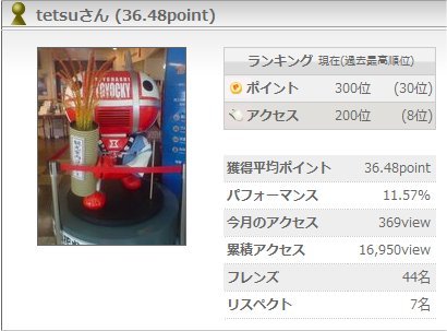 ポイントランキング200番。