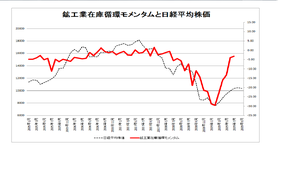 私は、経済産業省の鉱工業生産動向をベースにした、在庫循環モメンタムが日経平均株価に連動することに注目しています。