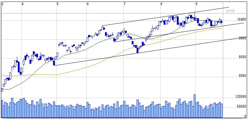 抵抗となりやすい下の山の中心は10270-10280 上の山の中心は10450