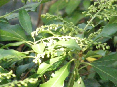 汗もにじみ出る暑い昼に、公園を散歩中「アシビの蕾」を見つけました。「馬酔木」は春に咲く花ですが、もうこんなに蕾が膨らんでいます。