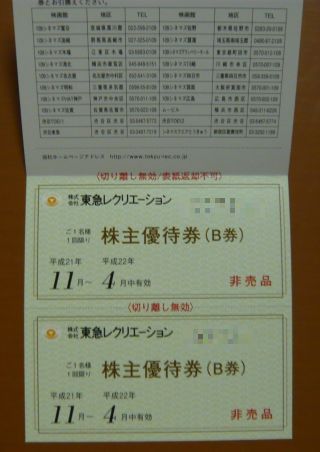 本日(9631)東急レクリエーションの株主優待が到着しました。