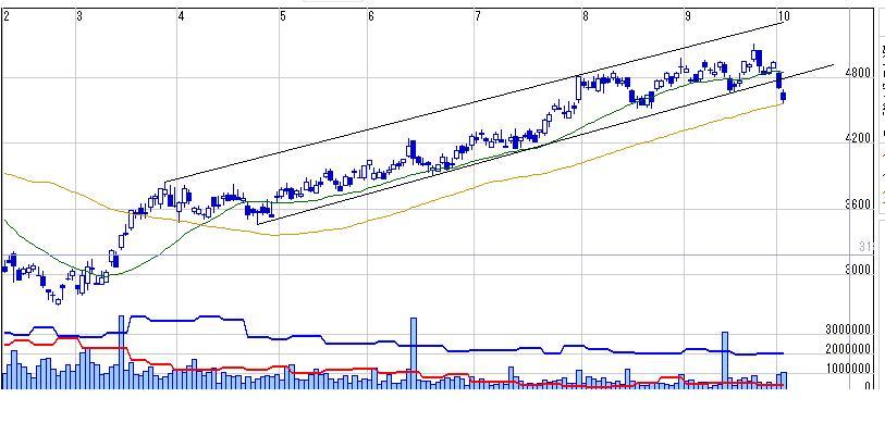 ・テルモ・・・ 支持線割れ(画像1) 4550が下値支持抵抗となるか、、、