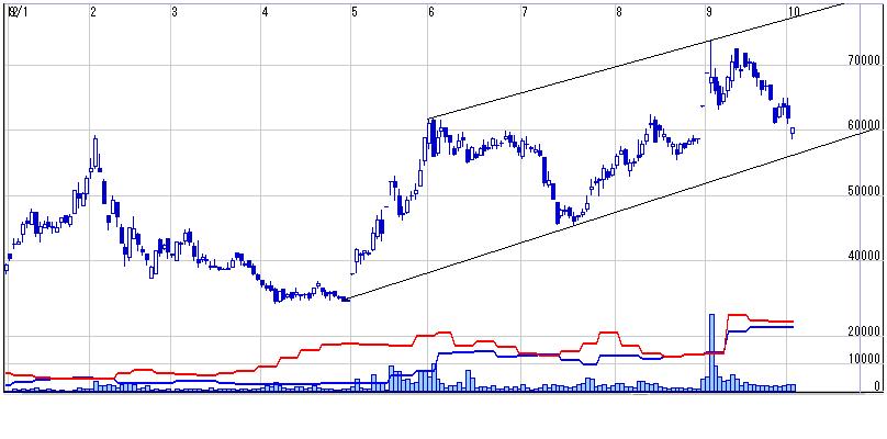 今まで26週線、52週線が下値支持となってるので、26週線 53000、52週線 46000あたりがあれば本気買い☆