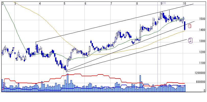 ⇒52週線 1612 12か月線 1685 200日線 1688 1600~1700あたりで買いか、、、