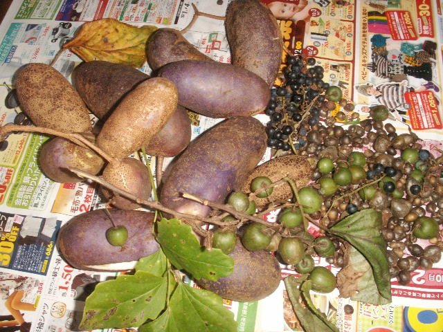 アケビの実は、ほとんど落果し、タヌキやイノシシに食べられ、別のところにはこばれて、糞にまじって落ち、発芽します