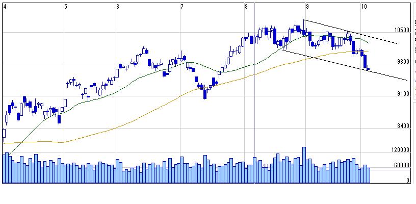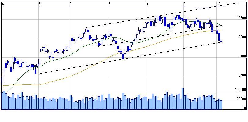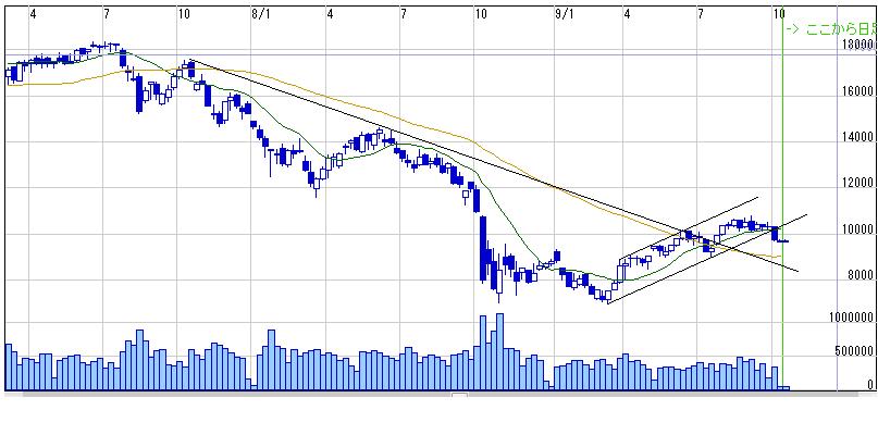 とはいえ07年10月からの上値抵抗ラインを7月に上抜いてるのでこのラインが下値支持線として機能しそう、、、