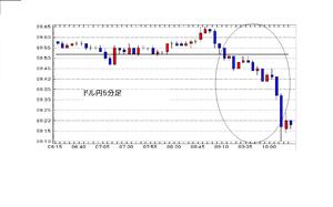 早朝には安定的に動いていたドル円が、急速に円高方向に動き、株式市場にショックを与えているようです。対ユーロでも円高の動きが目立ちます。