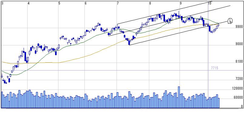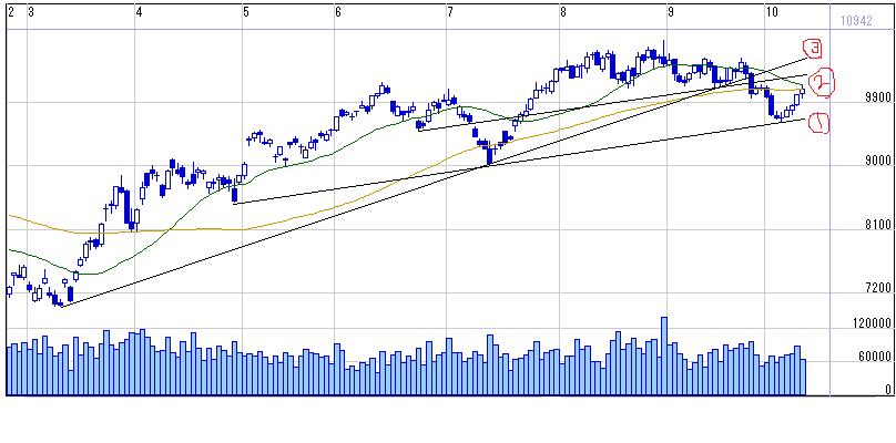 このまま横ばい中の基準線と転換線のレンジ内取引(10200-9630)になりそうな予感、、、^^;