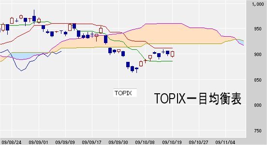 日足の表はTOPIXの一目均衡表を載せてみましたが、