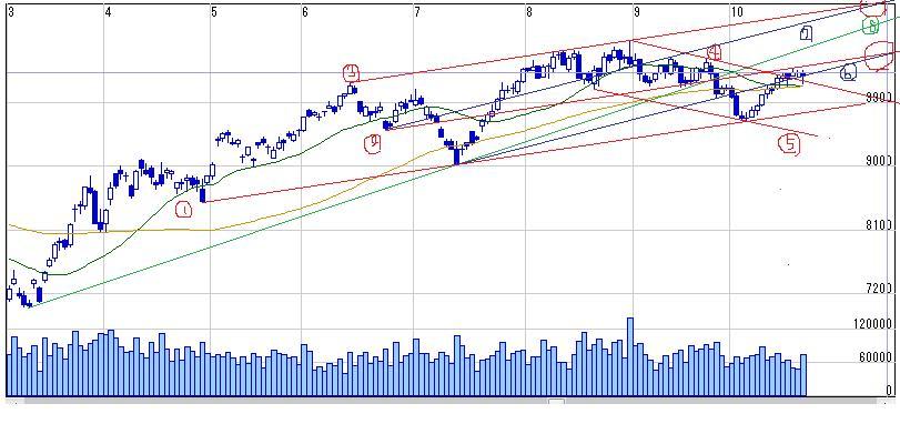 仕事から帰宅した頃(14時ころ)はちょうど10200あたりをうろうろしてたので、このまま両建てで持ち越しか~ と思ったら、いきなり上ブレイク!逆指値10230で10240売りを決済。その後レッジ10290-10300を埋めるかどうか注目してたけど、埋めきれなかった(高値は10290まで)ので10190買いは持ち越さず10280で決済。