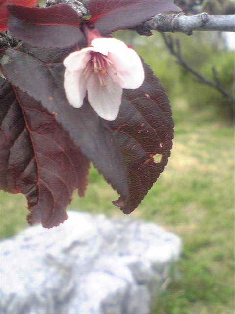 秋、春、はな:滝の水公園のベニスモモが咲いています。スモモもモクレンでしょうか?春の花が咲いています。秋の珍事。
