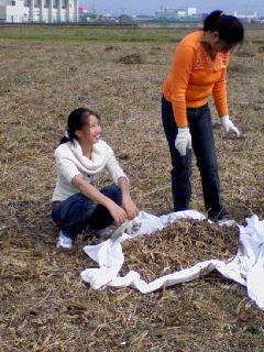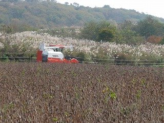 さて、昨日、田んぼではしゃぐ美人3人、こぼれまめを集めてます