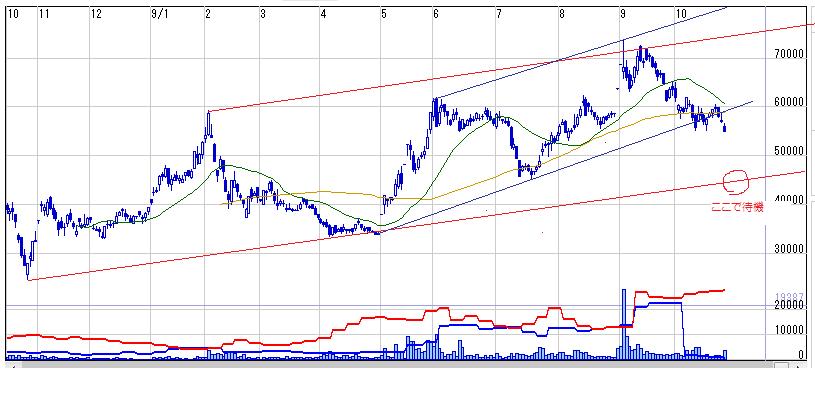 週足のほうがわかりやすいので週足です。下落トレンド真っ最中、、、