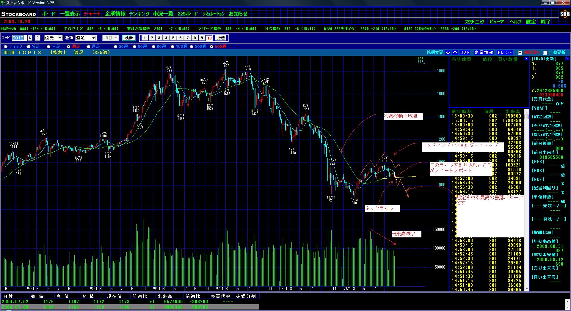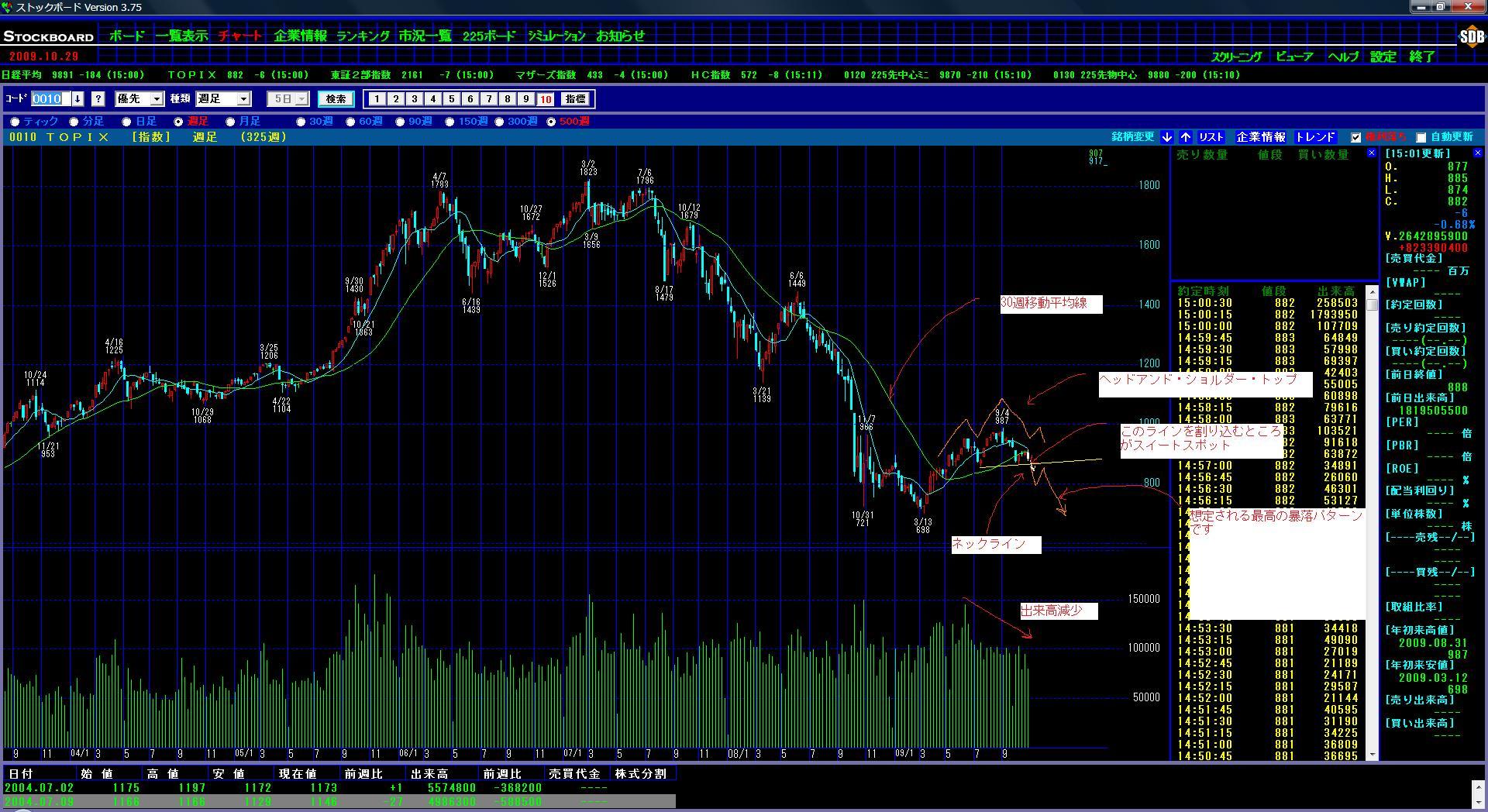 もちろんそうなるかどうかは分かりませんが、かなり大きく下げる可能性の高いポイントが近いことを注意して個別株もやりましょうなのです!