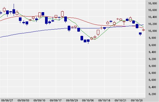 (始値10,006.84レンジ9,984.33-10,049.59±65.26)
