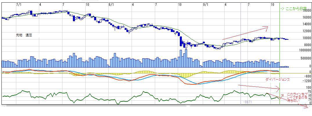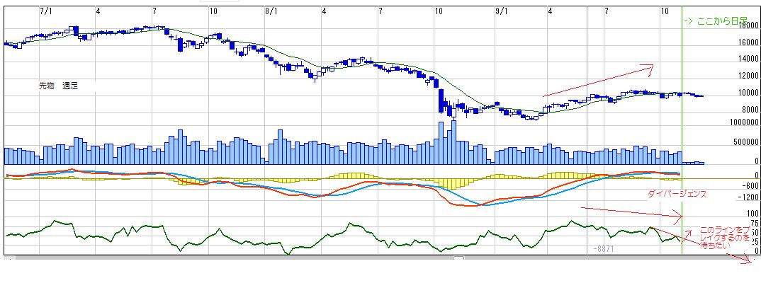 ・13週線が下向きになってしまっているので、このままだと週足ボリバンが収縮→下離れとなってしまい、ボリバンにそって下落してしまう可能性があるので、早いところ13週線の上向きを期待する。
