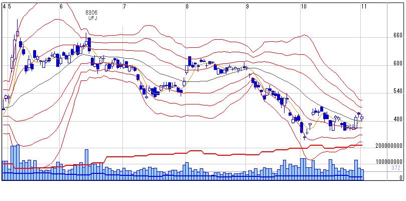 注意)ファンだは無視して日足チャートをざっと眺めただけですので、週足やオシレーターなどあわせて詳細なチャート分析をしたわけではありませんので、決して買いをすすめるものではありません^^;