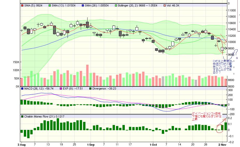 30日と2日の動きに注目。株価は下落してるにもかかわらずCMFは上昇しています。
