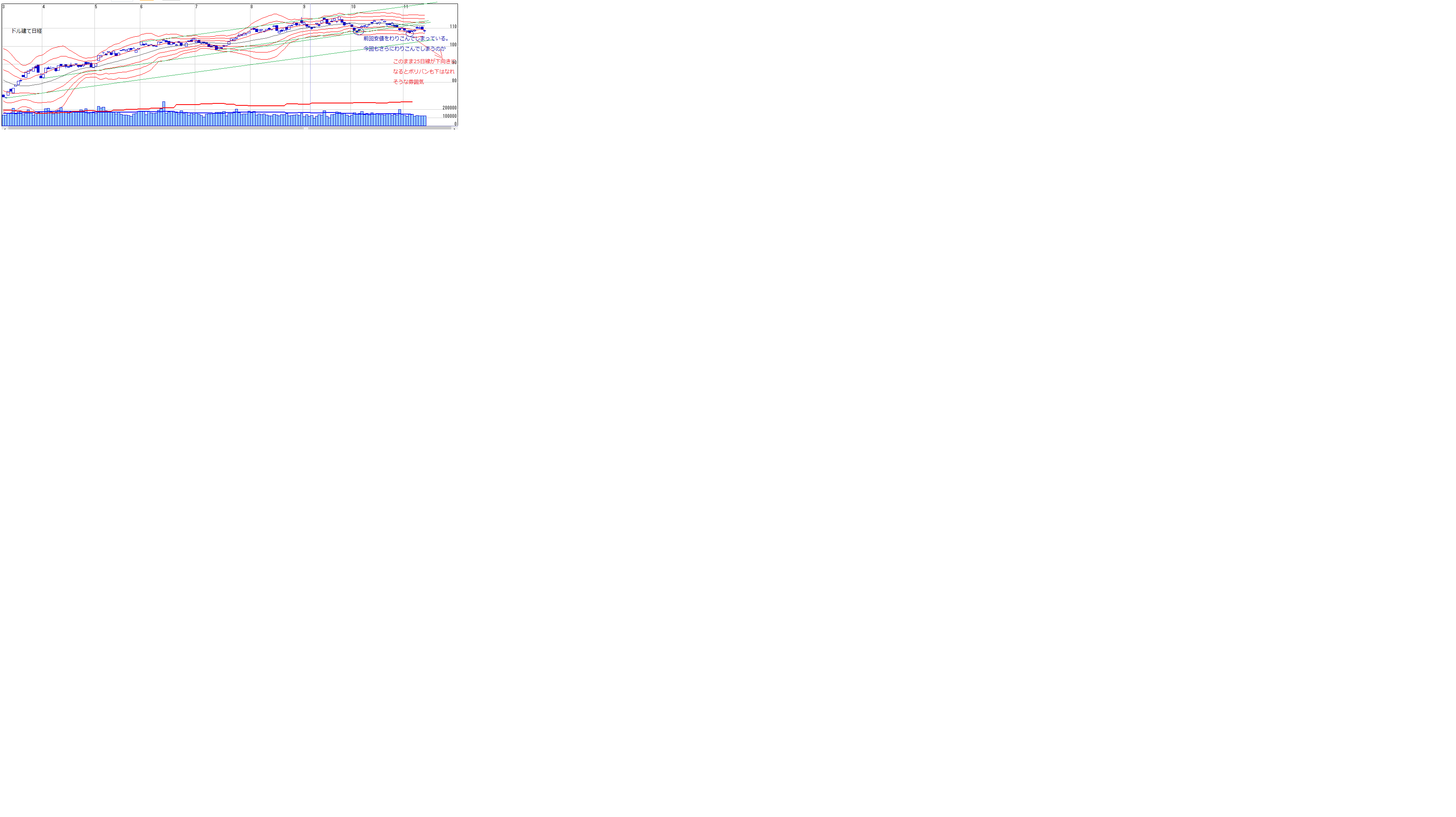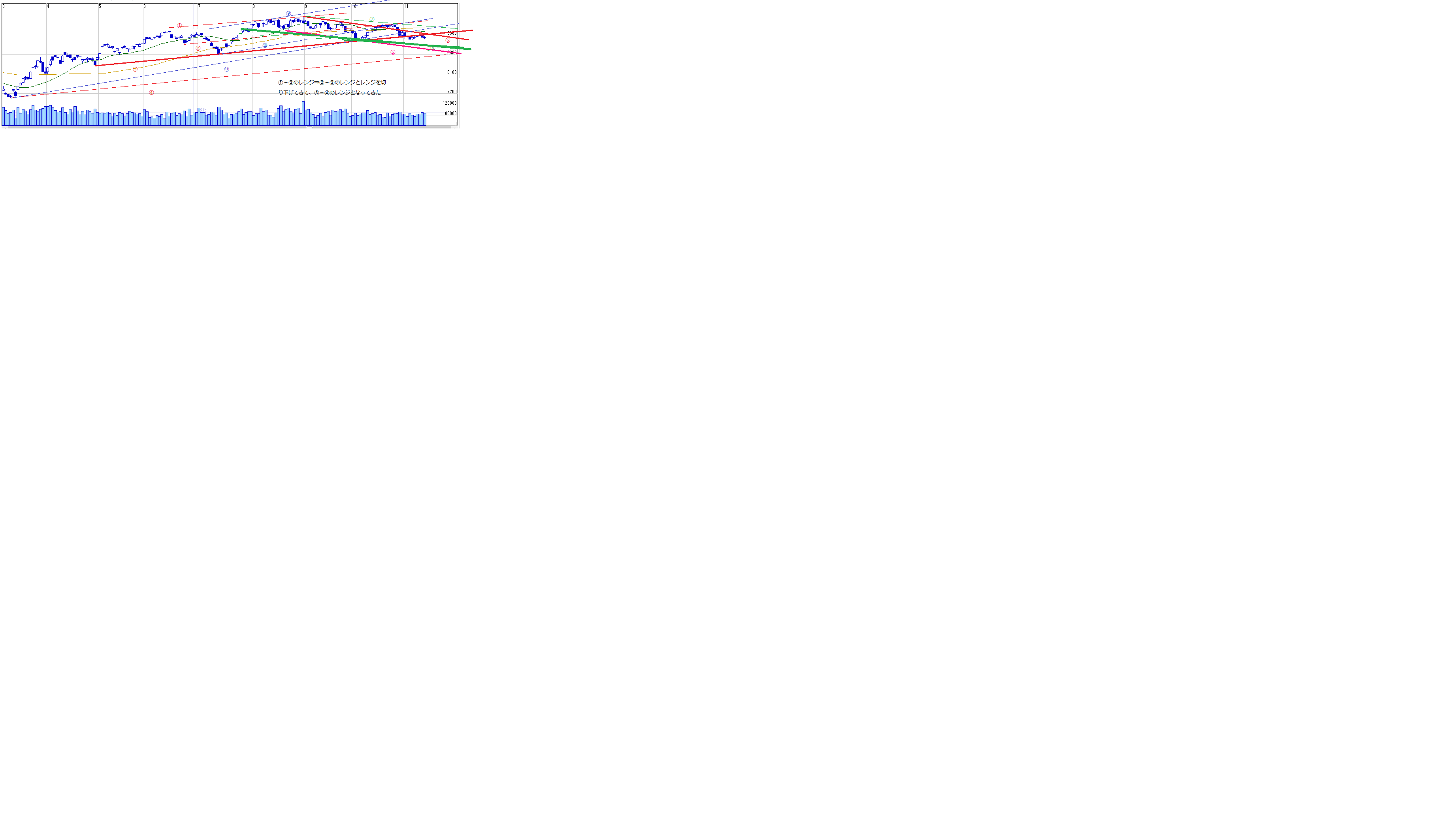 ・いろいろ線が引いてありますが、重要なのは赤いトレンドラインです。