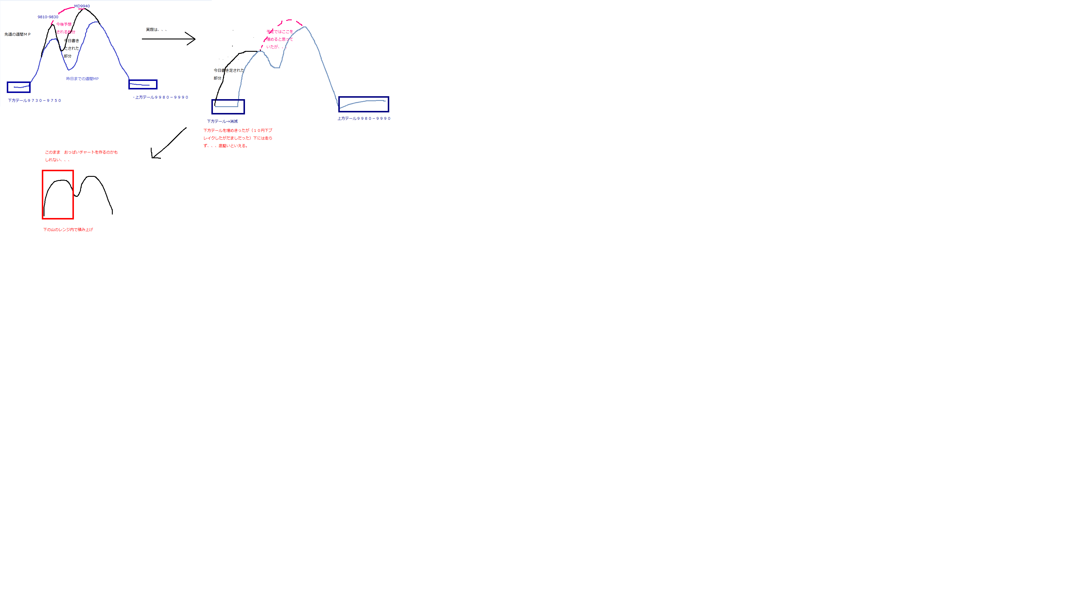先週のダブルディストリでレンジを切り下げたまま下の山内でのレンジ推移となってしまっている、、、