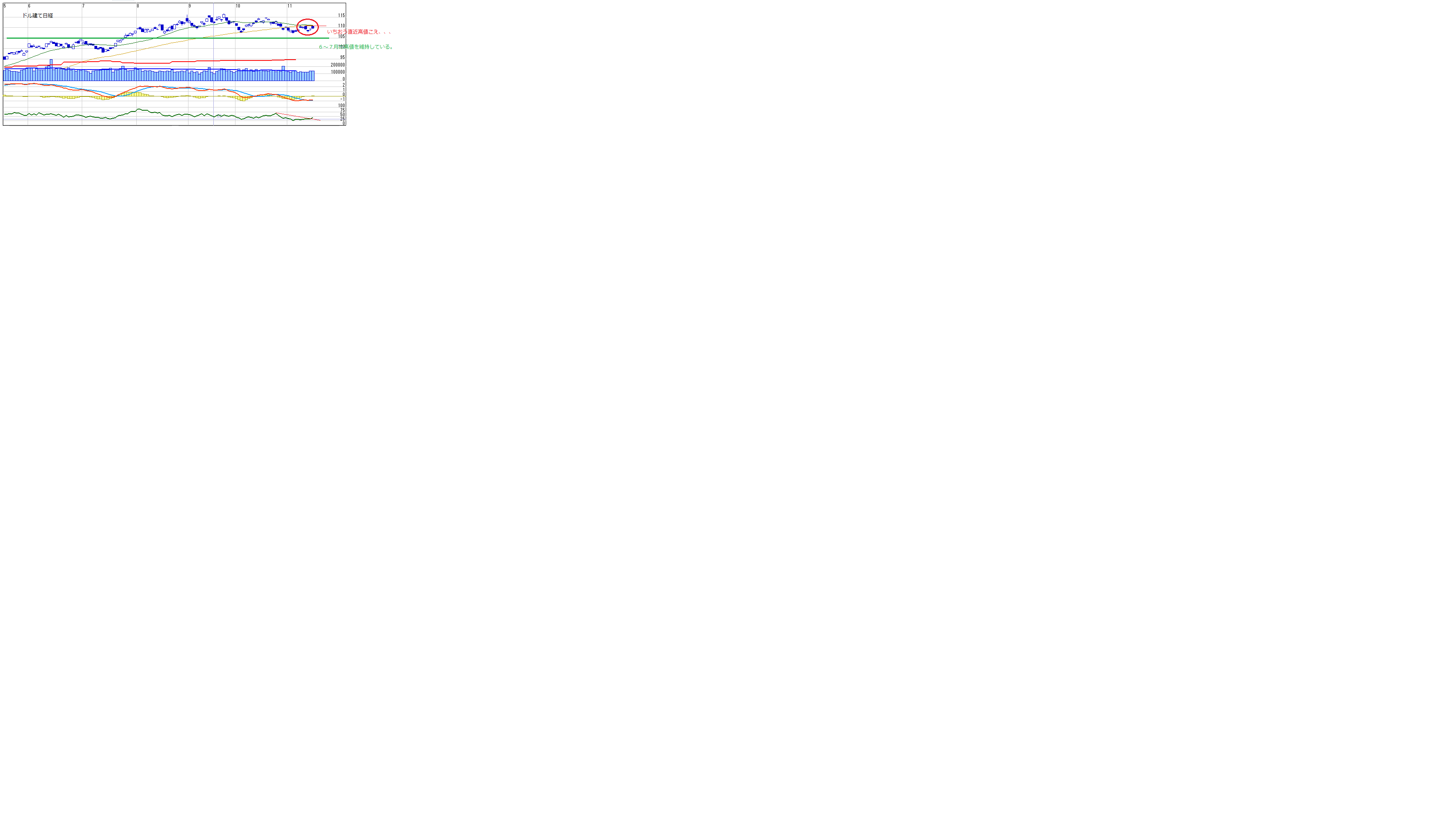 ドル建ては強気維持といえますので、外人が弱気になっているというのはウソでしょう、、、