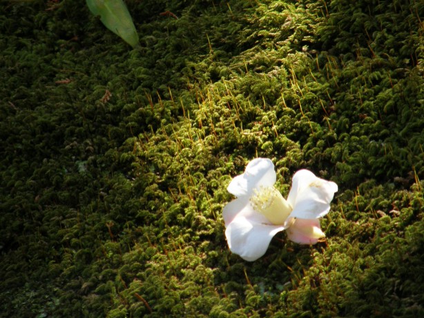 境内の紅葉 落ちた椿の花に暖かい日ざしが・・・