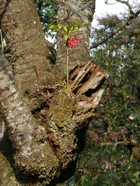マンリョウは鳥が種を運んだのか、木の上に生えていたので珍しいと思って撮りました。(木の上の感じが出ていませんね)