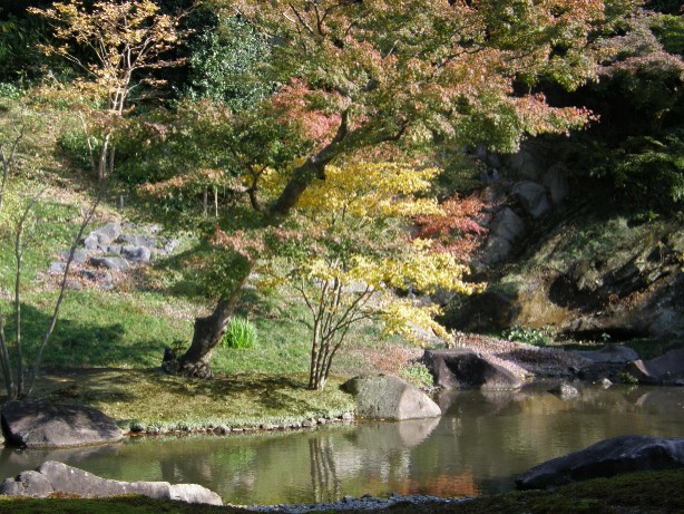 池に浮かぶ紅葉は最高です。