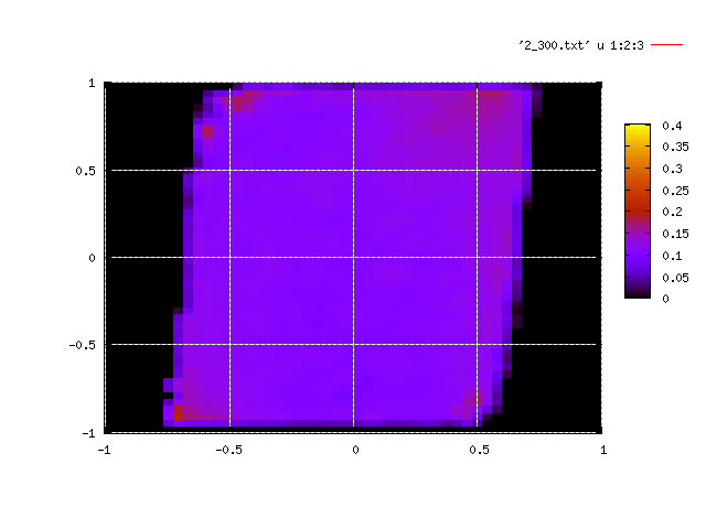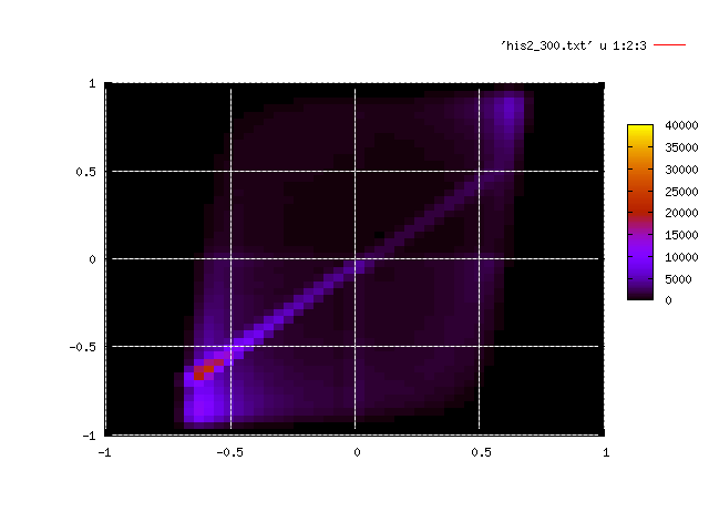 ヒストグラムからxn,ynがともに十分大きいか、小さいところに分布していることが分かり、それ以外の領域では分布は少なくデータに信用性は無い。