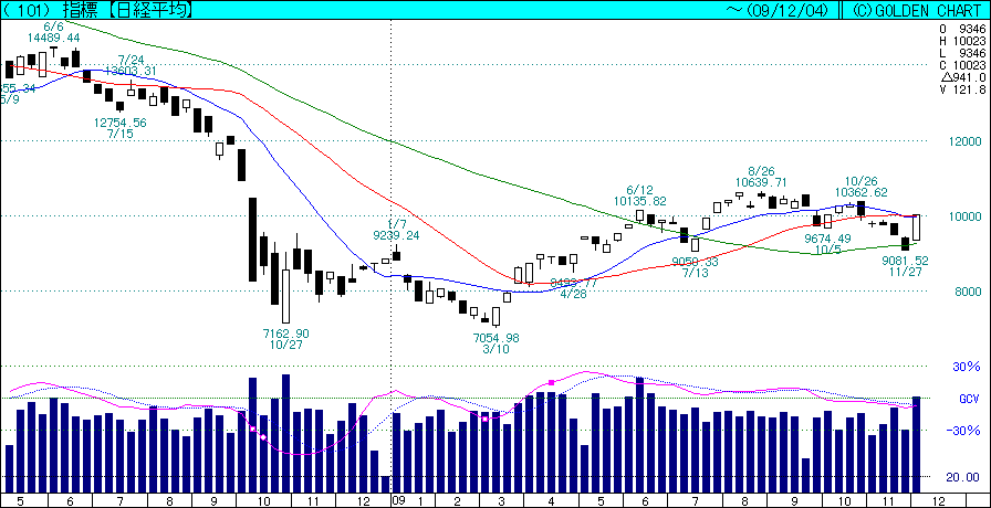 あとは政府なのか外人なのかは存じませぬが、果たしてどこまで買いが続くかどうか。大きく上げたあとは様子を見る必要があり、今週日経¥10,000の値固めができるかどうかが今後を占うことになるかと存じまする。