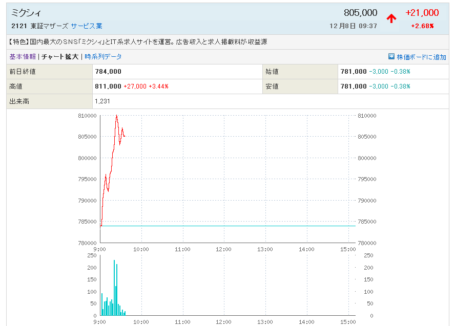 うまくいったわね! じゃ、797000円で1株買い注文いれてください