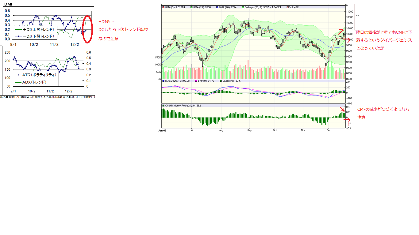 ・DMI,CMFともちょっと弱気に傾いてきた感じがするので注意、、、