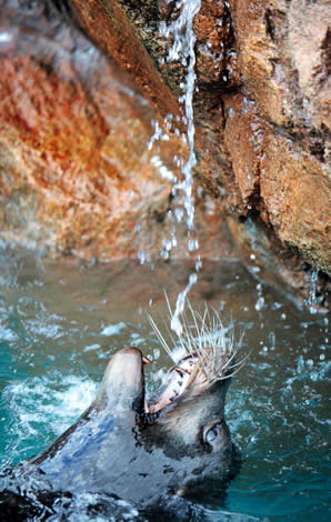 大阪府岬町のみさき公園のアシカの雄、チチが、食後きまってうがいをするようなしぐさを見せ、園内で話題だ。