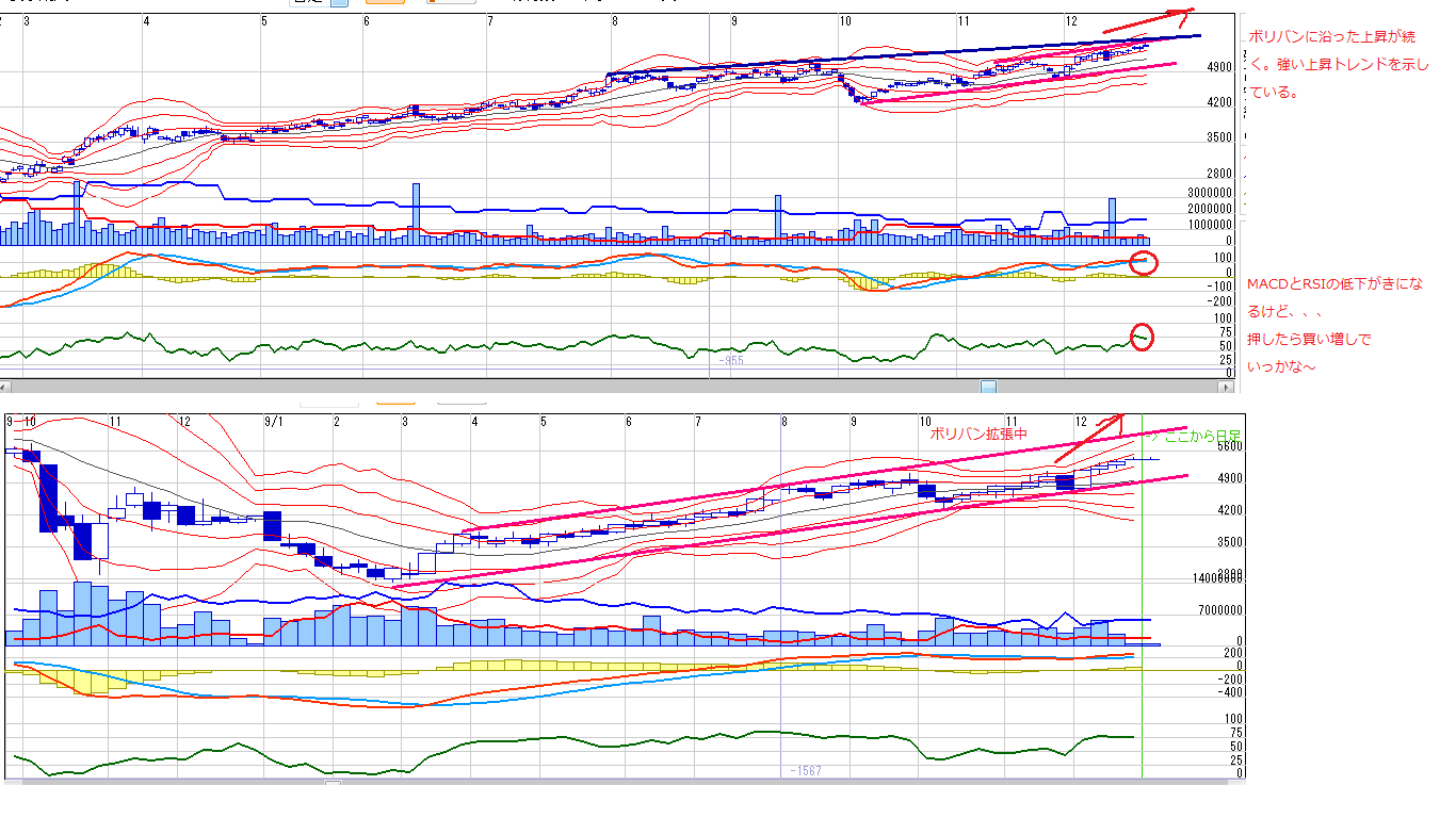 特に材料がでたわけではないのに買われていくので、本当の強さだと思います。地味な銘柄で投資家の目にはとまりずらいのでしょうが、こういうのが長く上昇トレンドが続く銘柄だと思います。