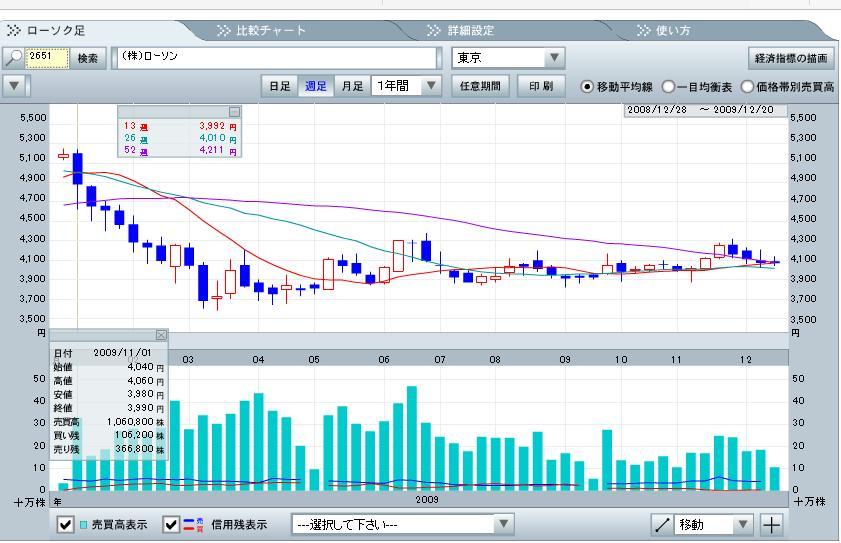 週足チャートからは13週移動平均線が26・52週の移動平均線を突き抜けるような感じで株価とかぶっているように思います。