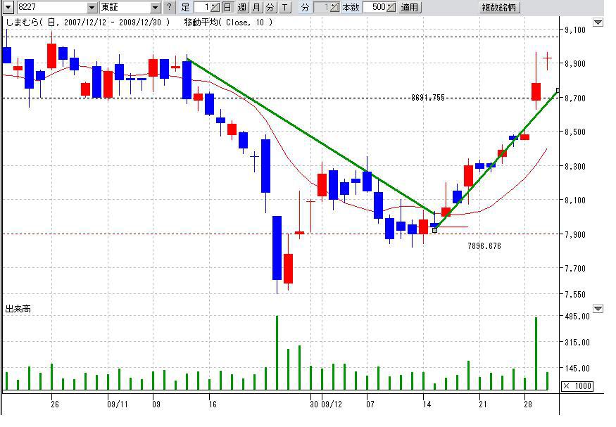 9053円のラインを突破したら完全に上昇トレンドと判断できると思います。