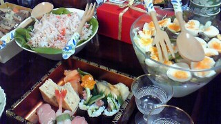 2010年の親戚会でのおせちの写真と、おいしかったサラダやお寿司の写真を撮影したので、お正月らしく日記にしておこう。