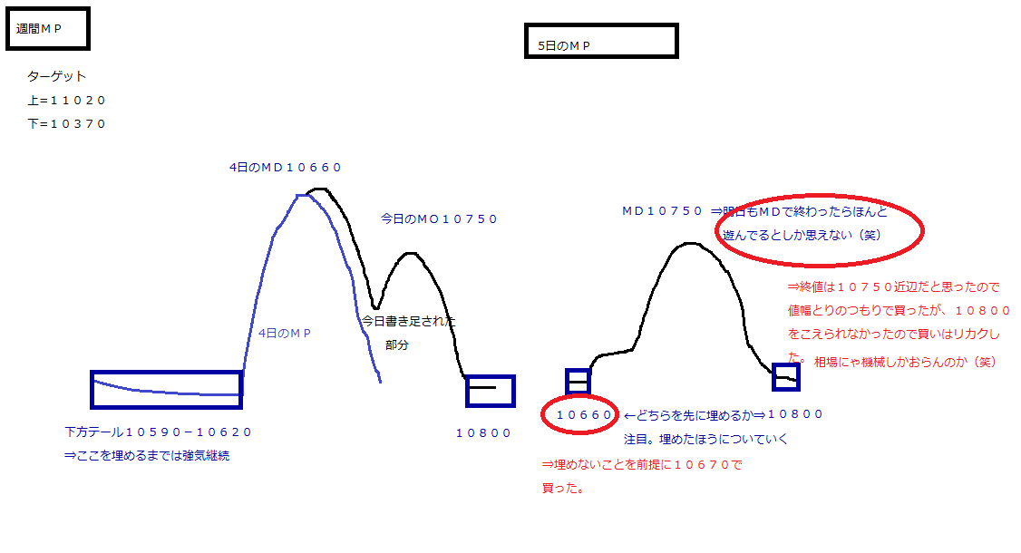 先物は昨日の注目ポイント10670で買いました(10650われでLCするつもりでした)