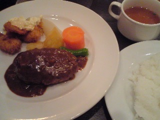日替わり?の洋食セットは、ハンバーグとエビフライのセット。
